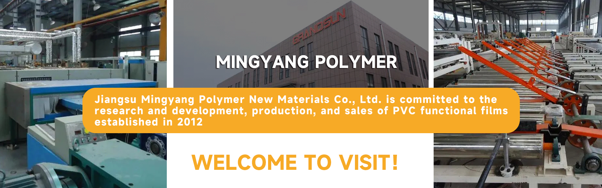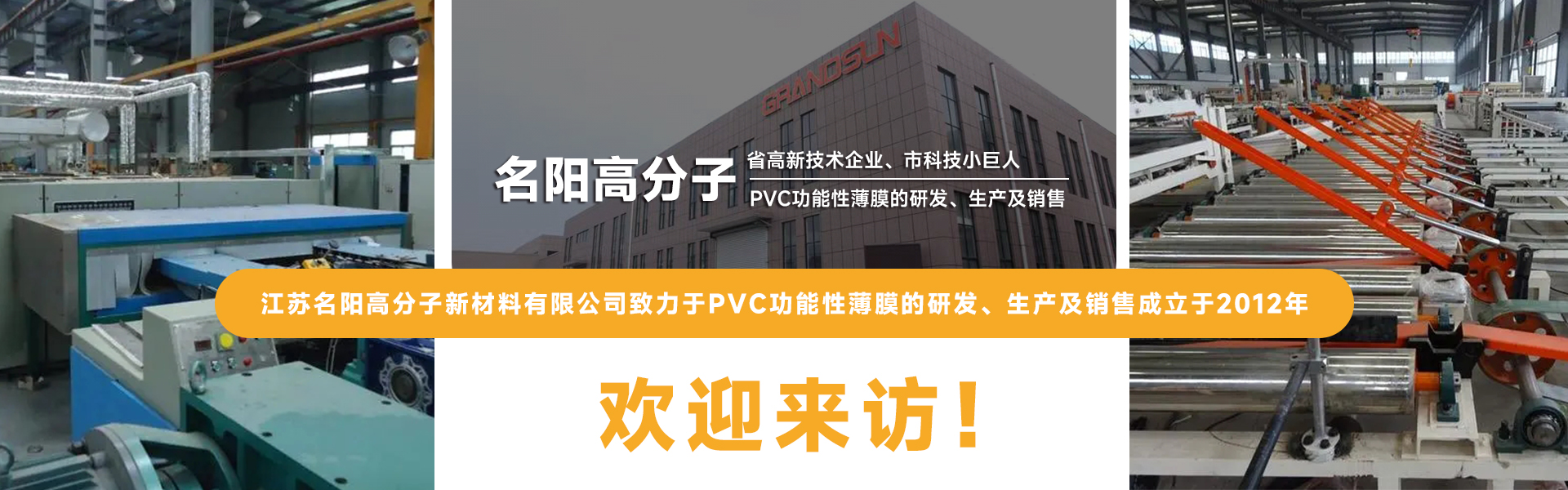 江苏名阳高分子新材料有限公司致力于PVC功能性薄膜的研发、生产及销售,成立于2012年。公司目前拥有国内领先水平的薄膜生产线11条,设备主要从德国、台湾等地引进。公司与知名高校合作,组建研究生工作站,已获得“省高新技术企业”、“市科技小巨人”等称号。